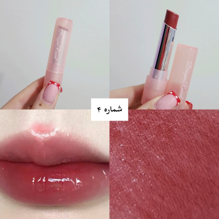 بالم لب و رژ جامد دراگون، شامل دو عدد بالم لب حرارتی رنگ صورتی باربی، دو عدد رژ گوشتی و جیغ، نرمکننده و آبرسان لب، کیفیت بالا